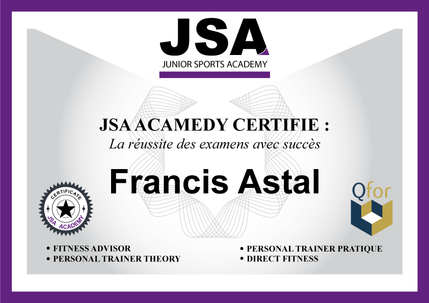 La JSA Academy, qui est l’un des meilleurs centres de Formation en matière de personal Training et les métiers du sport en Belgique, est reconnue et certifiée par le label de reconnaissance QFOR. En vous formant via la JSA Academy, vous optez pour la qualité, vous serez formé, certifié par un centre de Formation reconnu labellisé, et bénéficierez des compétences d’un formateur reconnu, certifié QFOR, qui mettra toute son énergie, et ses 15 ans d’expérience au service de votre développement dans votre nouveau métier. Bienvenue dans le monde merveilleux du personal Training, ensemble, allons vers la gloire .